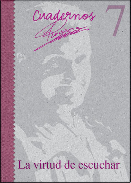La virtud de escuchar» es el sexto de una serie de Cuadernos que Rovirosa escribe (él mismo los edita a ciclostil y los encuaderna) y envía a varios cientos de amigos a fin de compartir sus reflexiones y establecer un diálogo que complete y enriquezca sus propuestas.